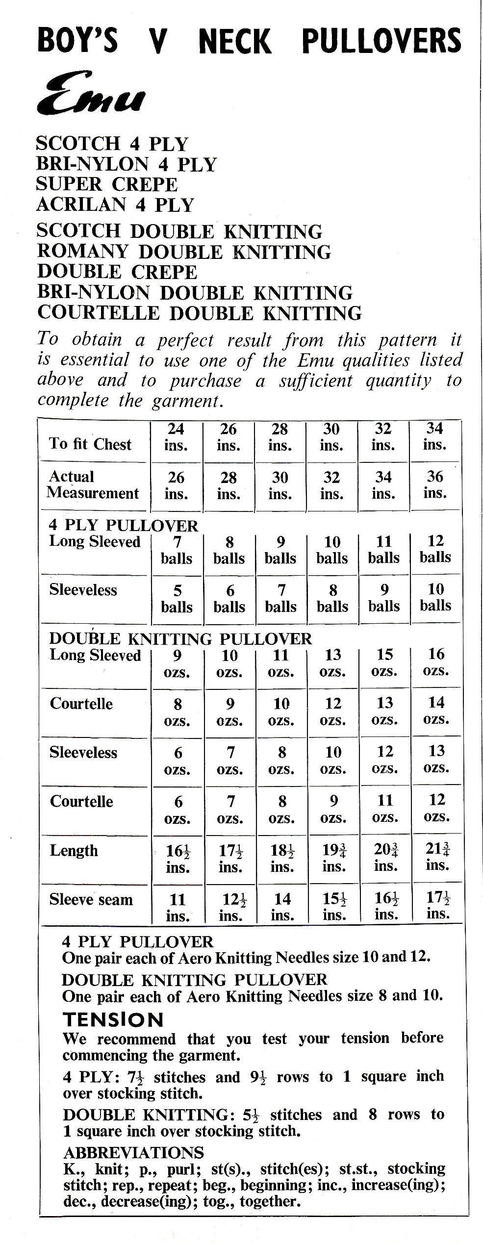 Always knit a small square of your item prior to commencing to check your tension and adjust the needle size as required. This is very important when using modern equivalent wools as modern ply weights do not correspond to vintage ply weights!