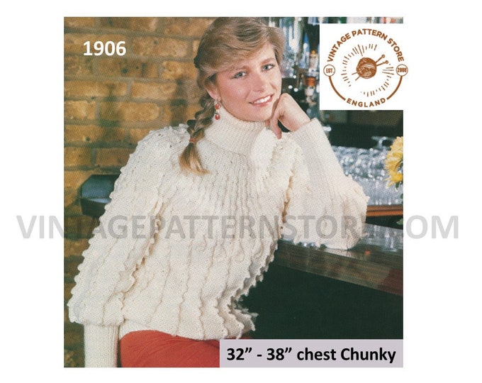 Ladies Womens Mens 80s vintage 5 ply crew neck cable yoked cabled yoke raglan sweater jumper pdf knitting pattern 32" to 46" Download 4596