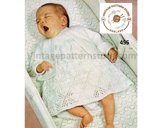 Baby Babies 80s vintage DK pram set layette matinee coat bonnet booties & leggings pdf knitting pattern 16" to 20" chest PDF download 1829