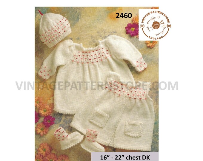 Baby Babies 60s vintage 4 ply lacy layette pram set with matinee coat jacket & dress pdf knitting pattern 18" to 20" chest PDF Download 455