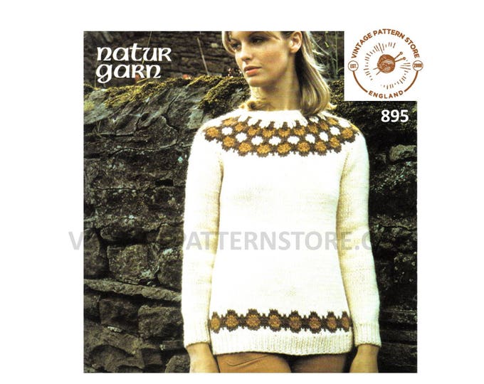 Ladies Womens 80s vintage round neck drop shoulder check DK dolman sweater jumper pdf knitting pattern 32" to 38" chest PDF Download 3280