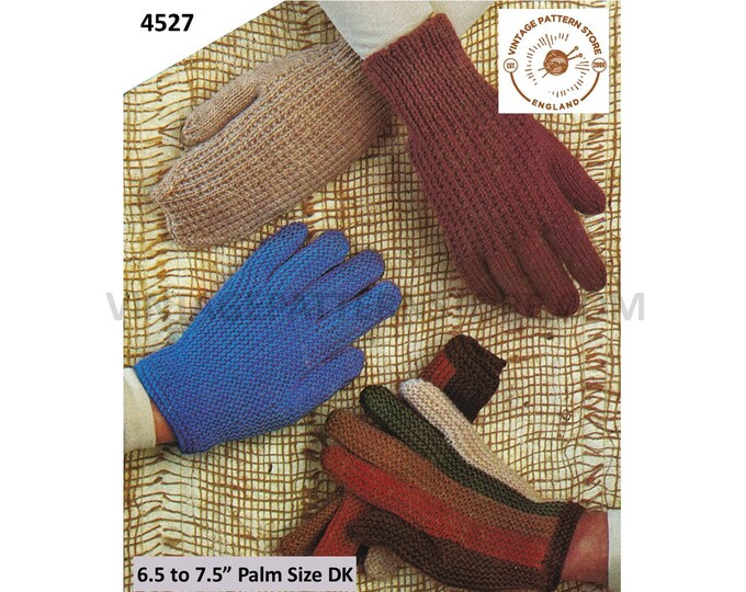 Ladies Womens 80s vintage easy to knit DK striped and plain gloves and mittens pdf knitting pattern 6.5" to 7.5" palm size PDF Download 4527
