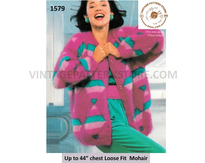 Ladies Womens 50s vintage easy to knit round neck chunky knit raglan cardigan jacket pdf knitting pattern 34" to 38" chest PDF download 3578