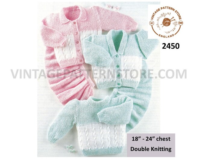Baby Babies 50s vintage 3 ply pram set layette matinee coat bonnet beret leggings & mittens pdf knitting pattern 21" chest Download 3555
