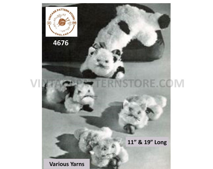 50s vintage plain and simple easy to knit 4 ply cuddly toy pussy cat kitten pdf knitting pattern 6.5" high approx instant PDF Download 1065