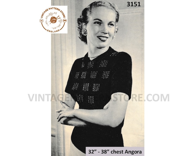 Ladies Womens 70s vintage 4 ply round neck striped short sleeve split side tabard sweater pdf knitting pattern 32" to 38" PDF Download 4286