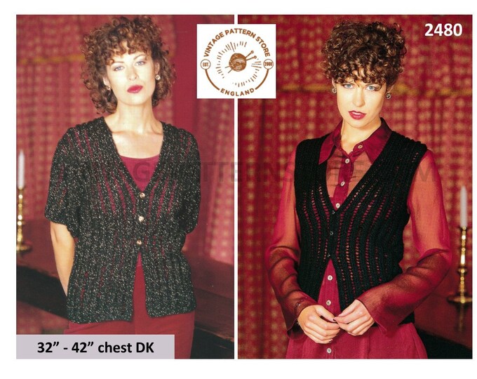 Ladies Womens Girls 90s DK V neck drop shoulder lacy dolman picot cardigan pdf knitting pattern 24" to 46" chest Instant PDF download 2440