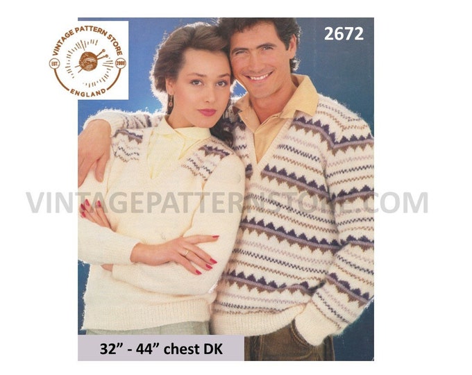 Boys Girls 60s vintage 4 ply crew neck fair isle raglan sweater jumper & zipped jacket pdf knitting pattern 22.5" to 27" Download 1269