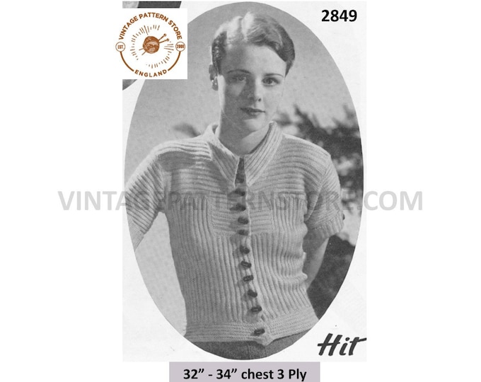 Ladies Womens 30s vintage 4 ply round neck collared cable cabled raglan cardigan pdf knitting pattern 36" chest Instant PDF download 1149