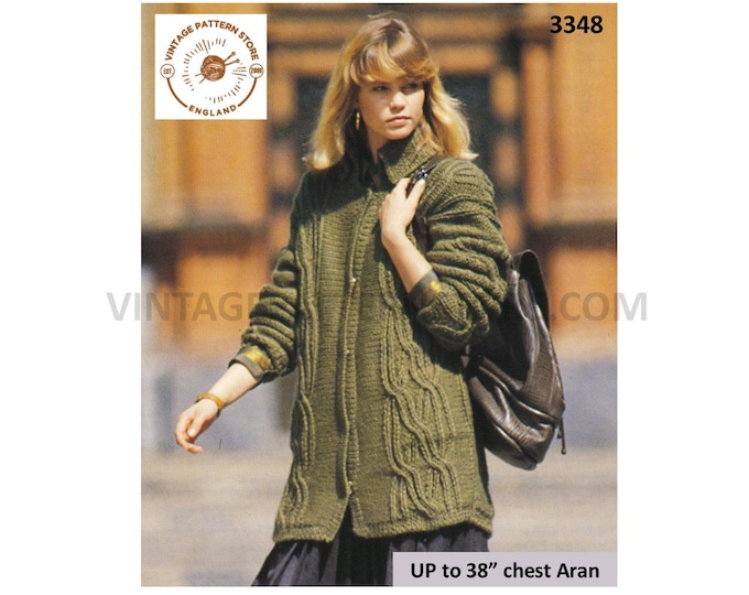 Ladies Womens Girls 80s vintage crew neck cable cabled raglan aran sweater jumper pdf knitting pattern 26" to 38" Instant PDF download 179