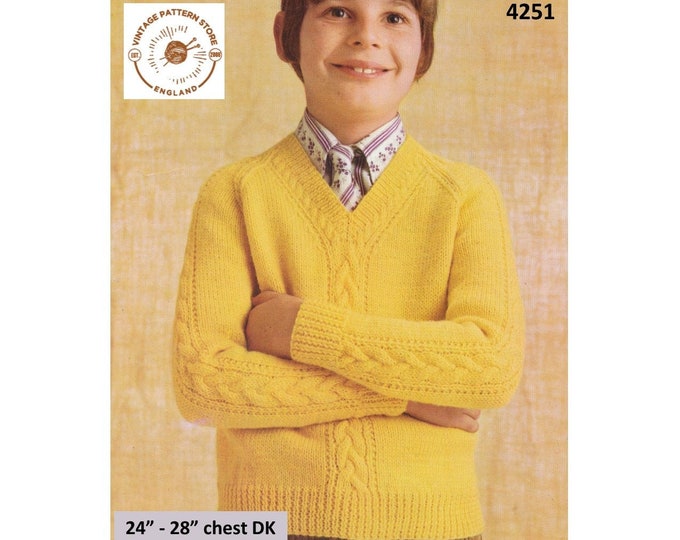 Childrens Toddlers Boys Girls 90s crew neck chunky knit cable cabled raglan sweater jumper pdf knitting pattern 22" to 36" PDF Download 2347