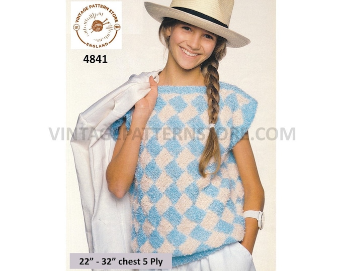 Boys Girls 90s 4 ply or DK quick and easy to knit V neck sleeveless sweater vest slipover pdf knitting pattern 24" to 32" PDF Download 4830
