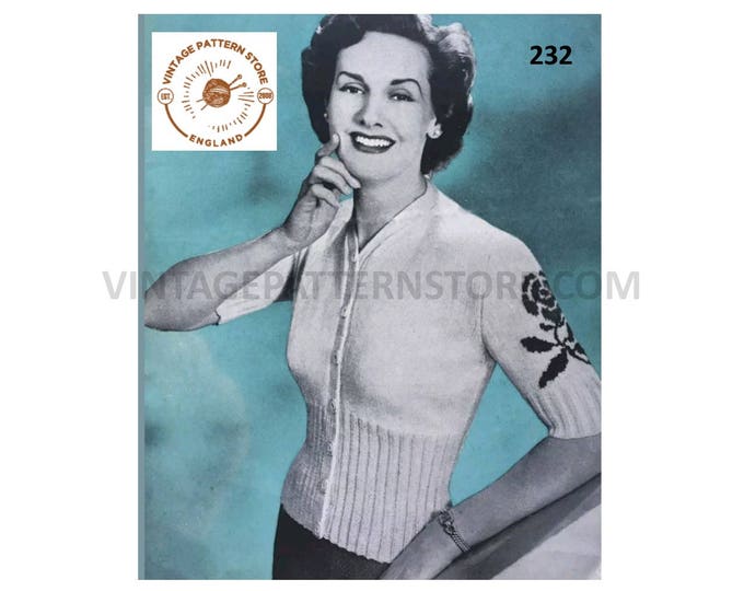 Ladies Womens 40s vintage 3 ply fair isle yoke yoked raglan sweater jumper & cardigan twin set pdf knitting pattern 34" to 36" Download 608
